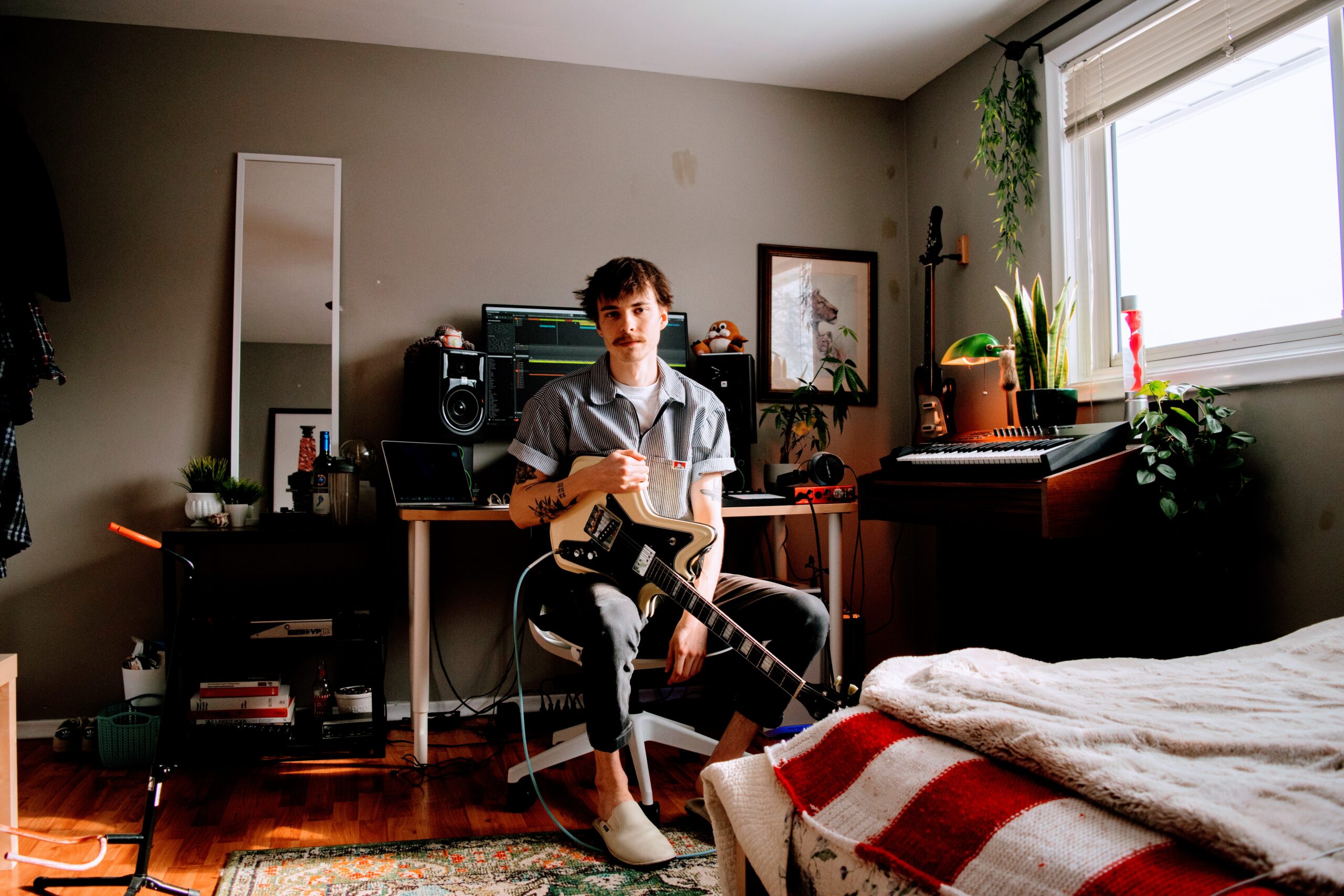 Solo artists with self-produced music are really what sparked his confidence to begin his own project. “There’s no reason I can’t get recording gear and start putting these instruments that I’ve been learning together.” He revealed that it was a lot of trial and error playing around with beats, even to the point of releasing the beats on the exact same day that they were created on SoundCloud.
